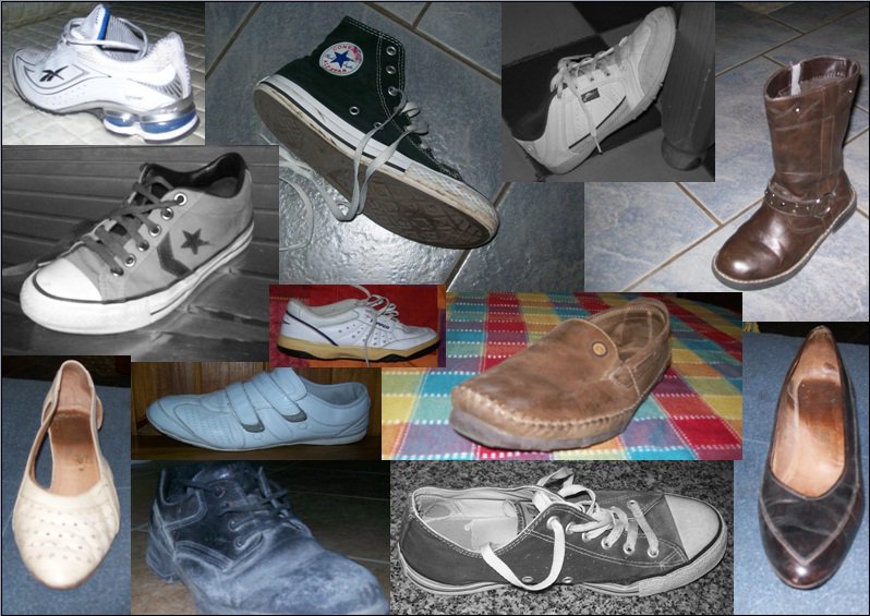 La segunda parte de este trabajo era sobre "calzados". La propuesta consistía en tomar 10-12 fotografías de calzados (variados, masculinos, femeninos, de niño, de joven, de adulto, de ancianos), excepto las tan queridas "chinelas" u "ojotas" a las que recurrimos en verano.